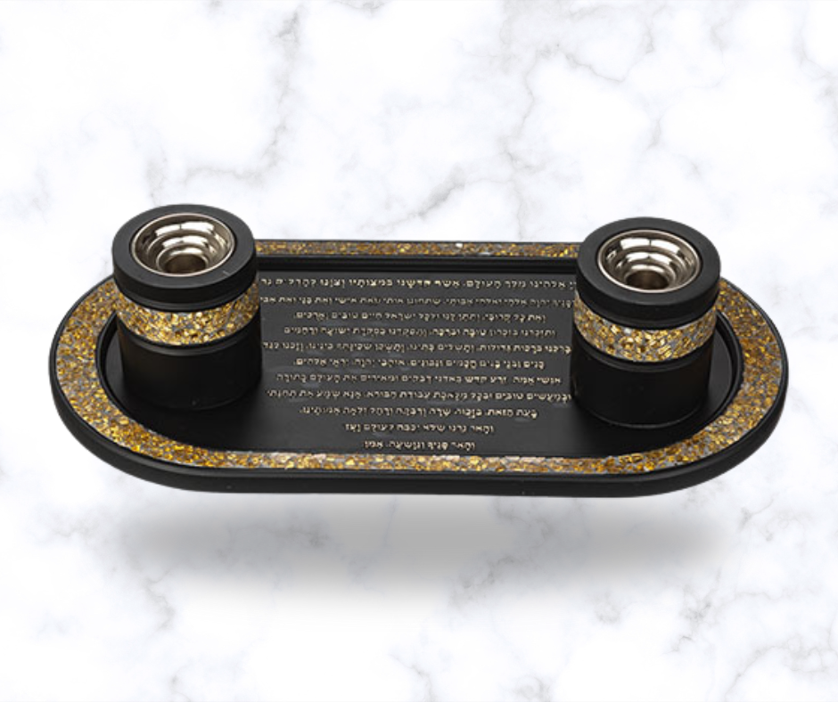 סט פוליריזן מגש להדלקת נרות וזוג פמוטים מהודרים UK81321